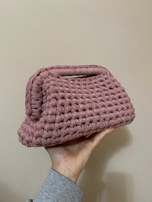 Pochette Rosa brillantinato in cotone fatta a mano