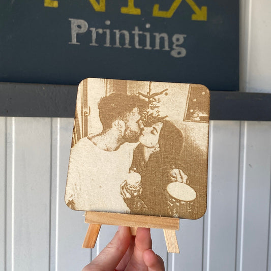 Quadro in legno inciso con foto