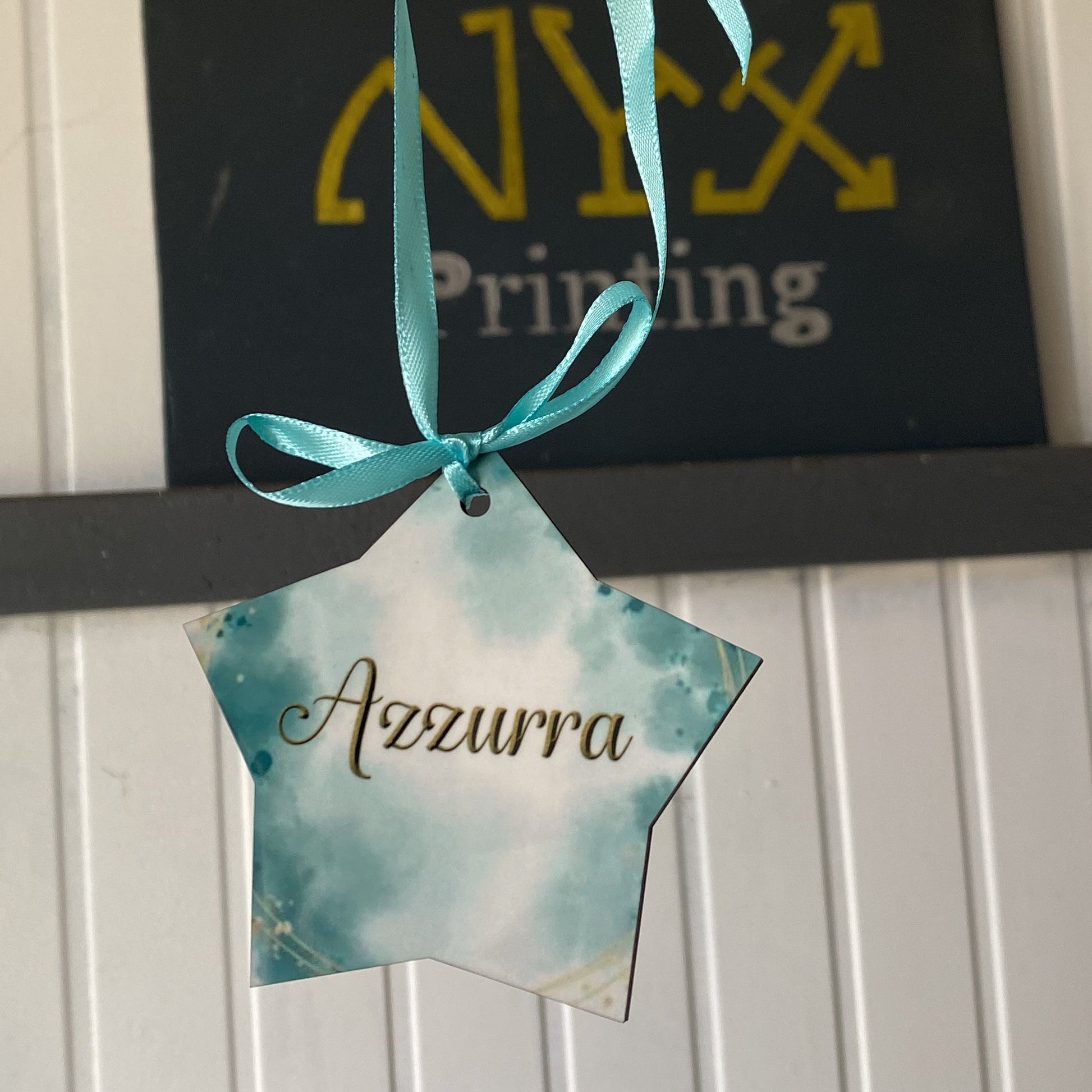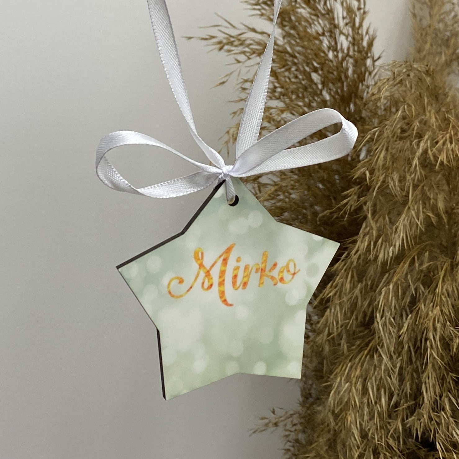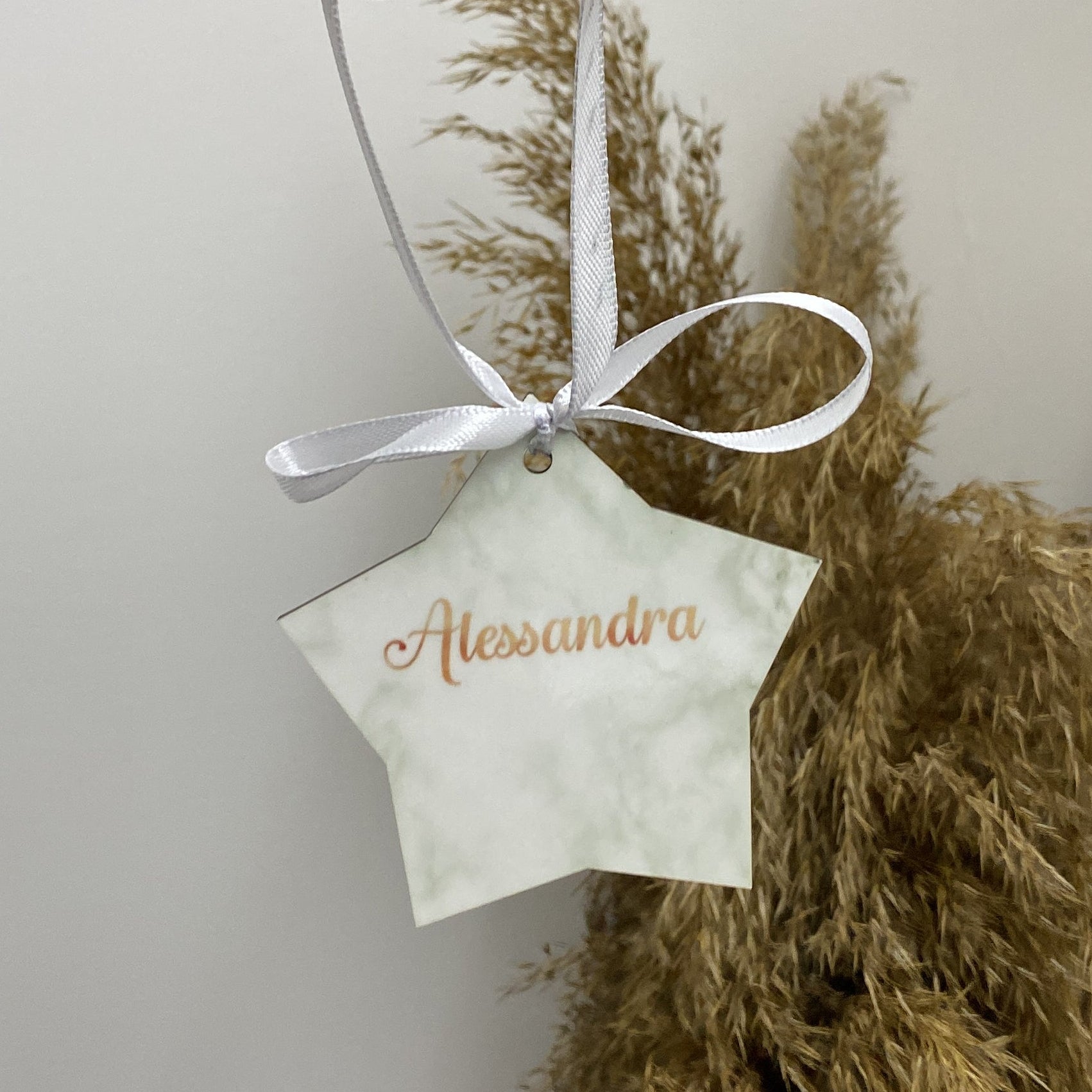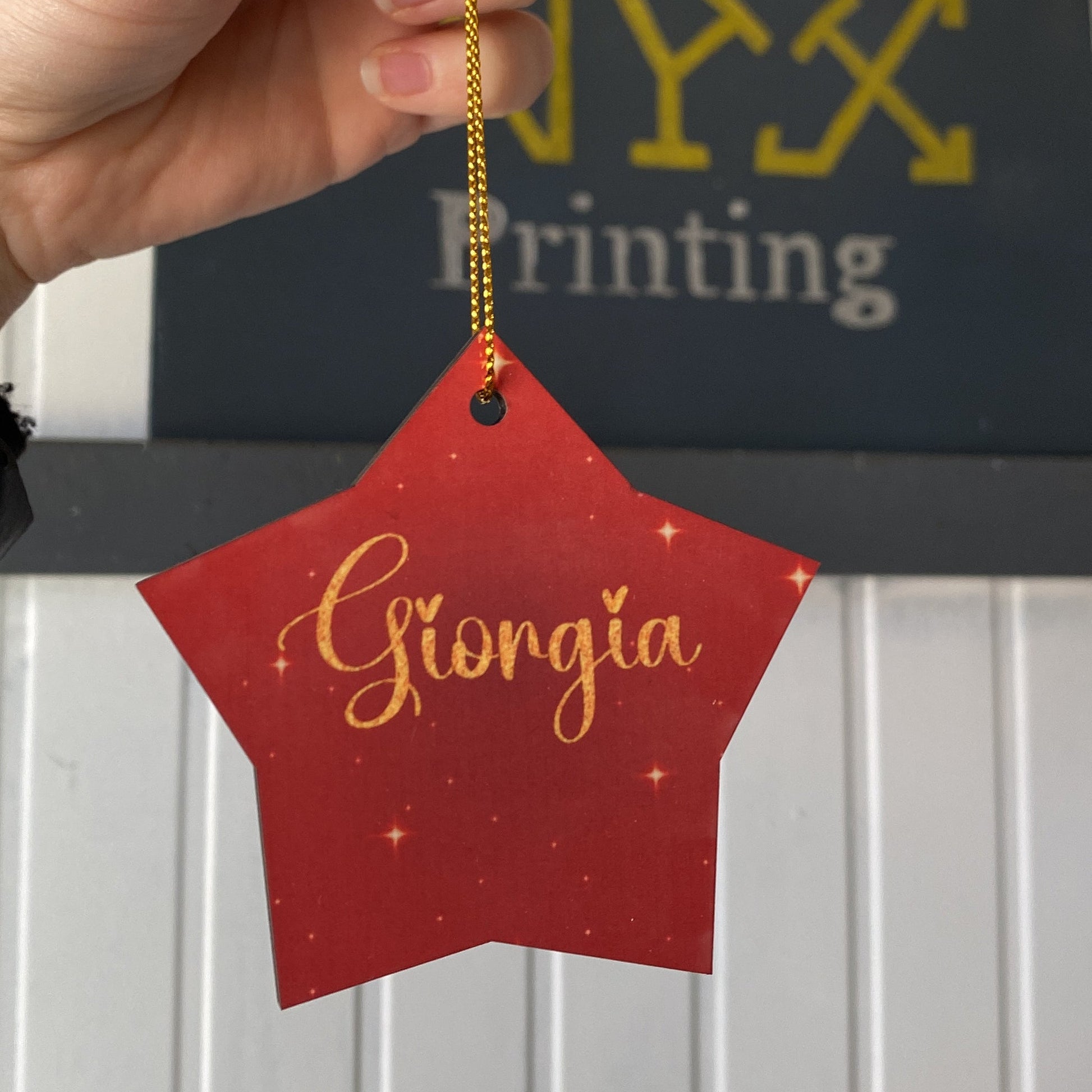 Pallina di natale in legno a forma di stella Personalizzabile.