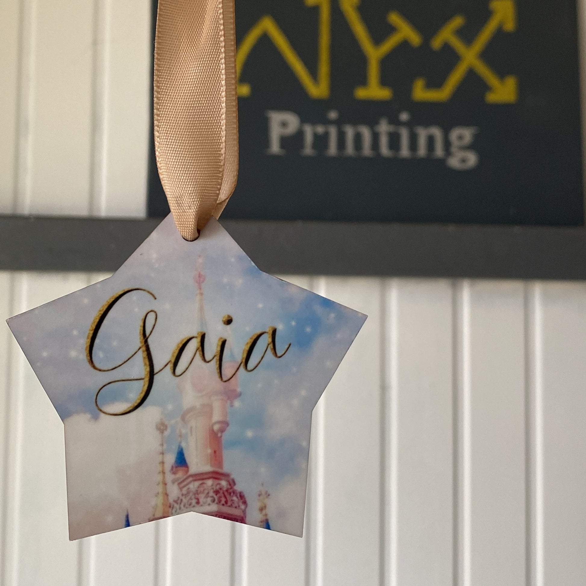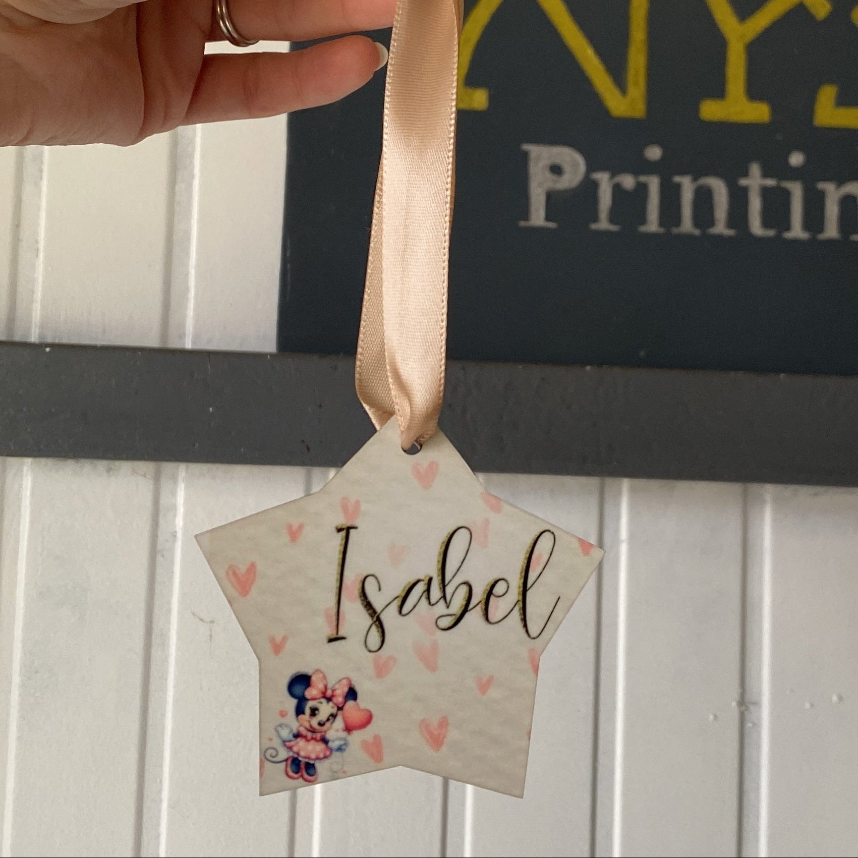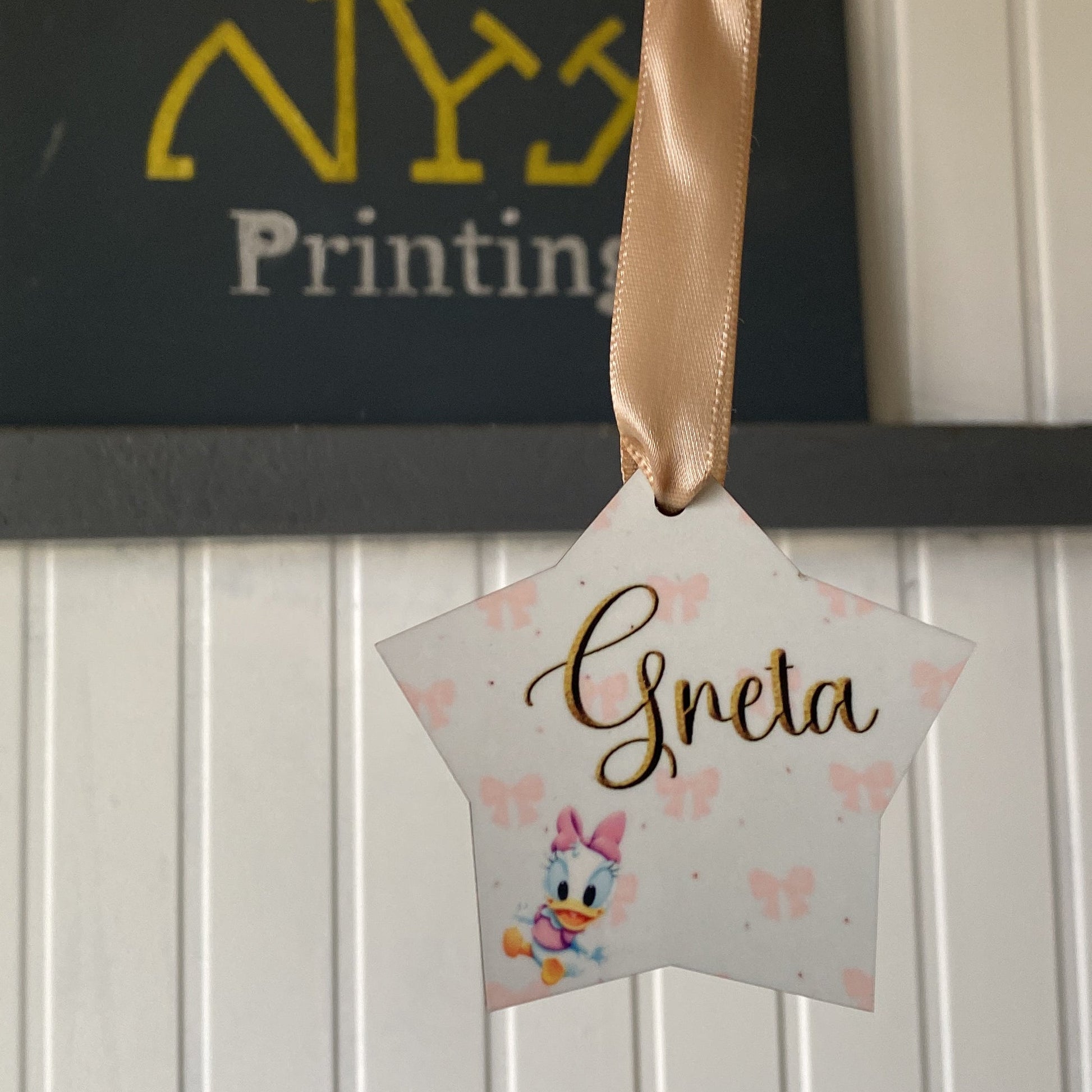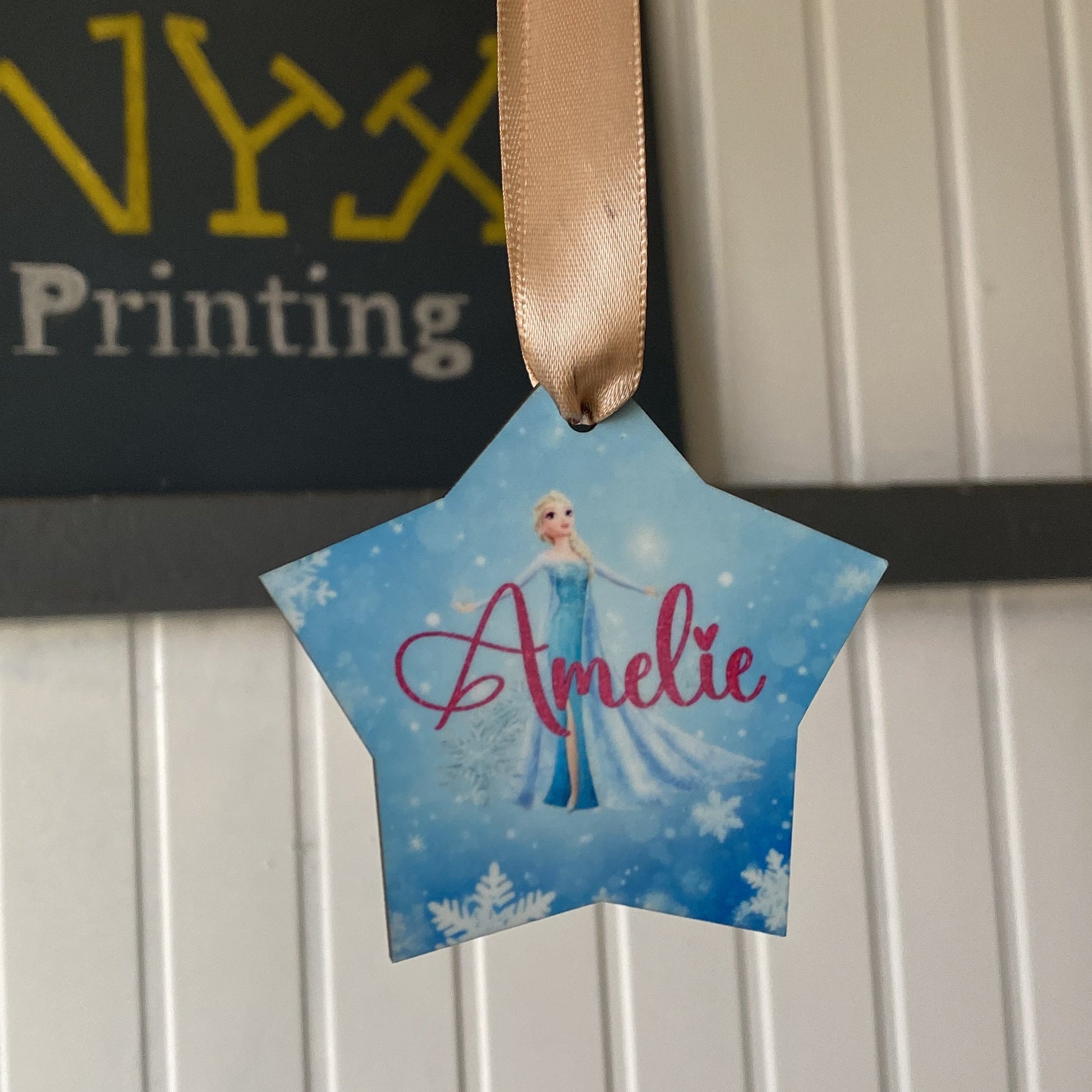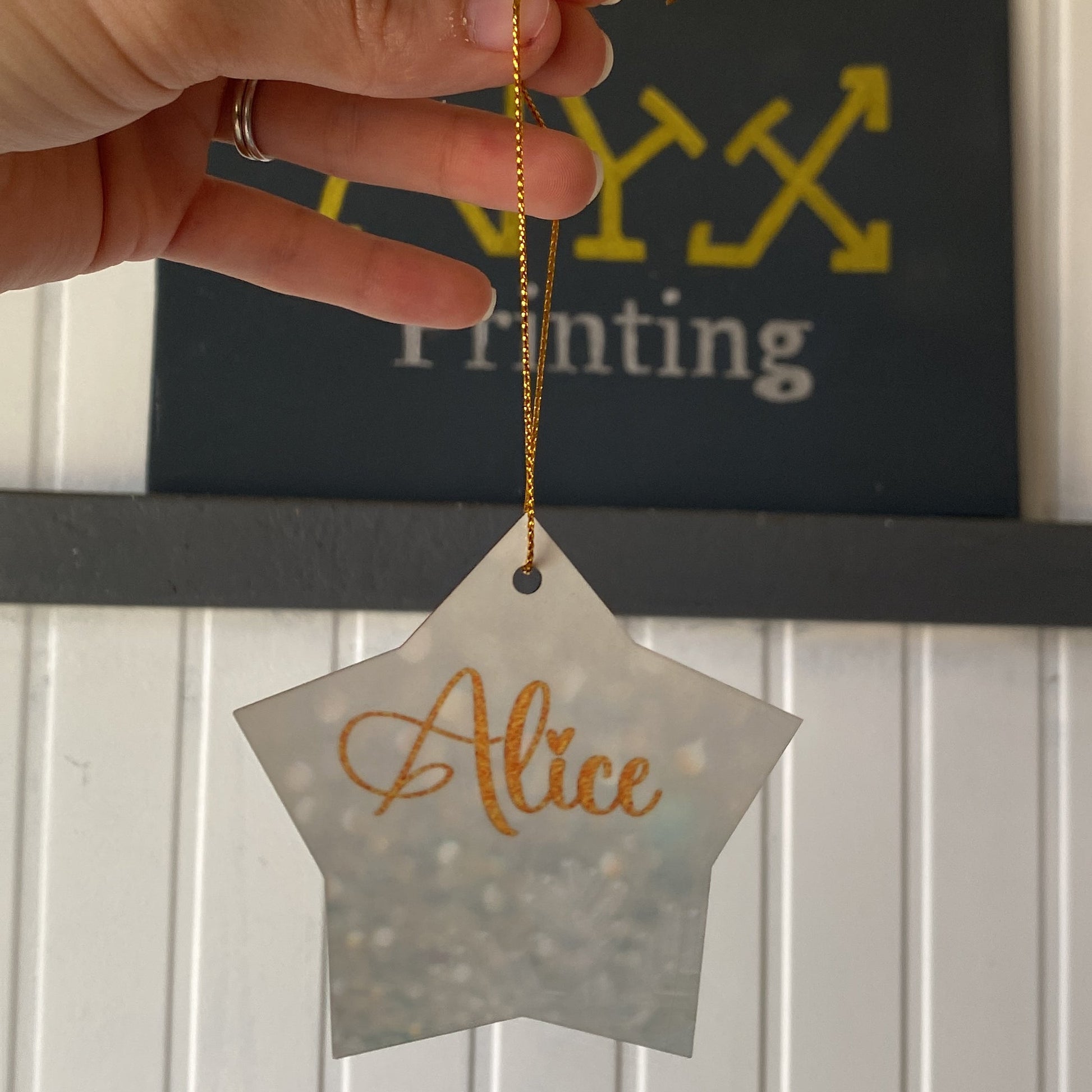 Pallina di natale in legno a forma di stella Personalizzabile.