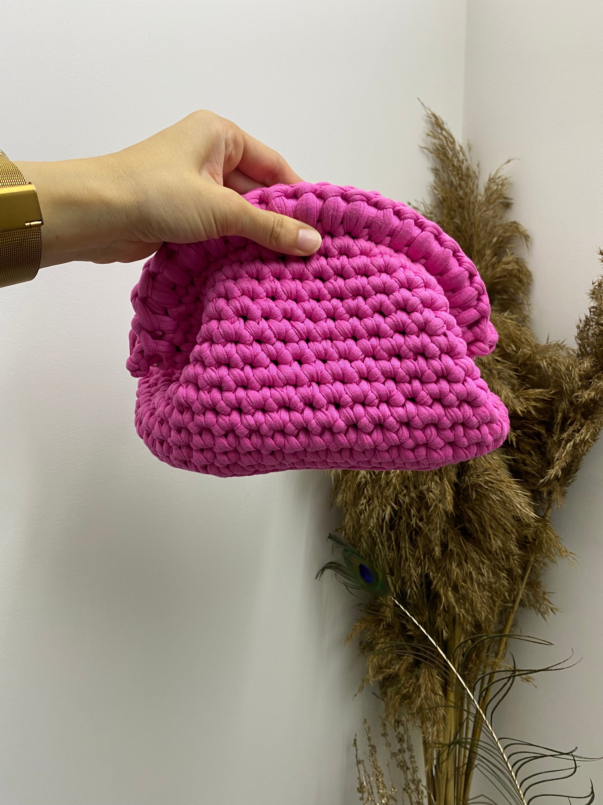 Borsa Pochette media fucsia con manico rotondo in cotone fatta a mano