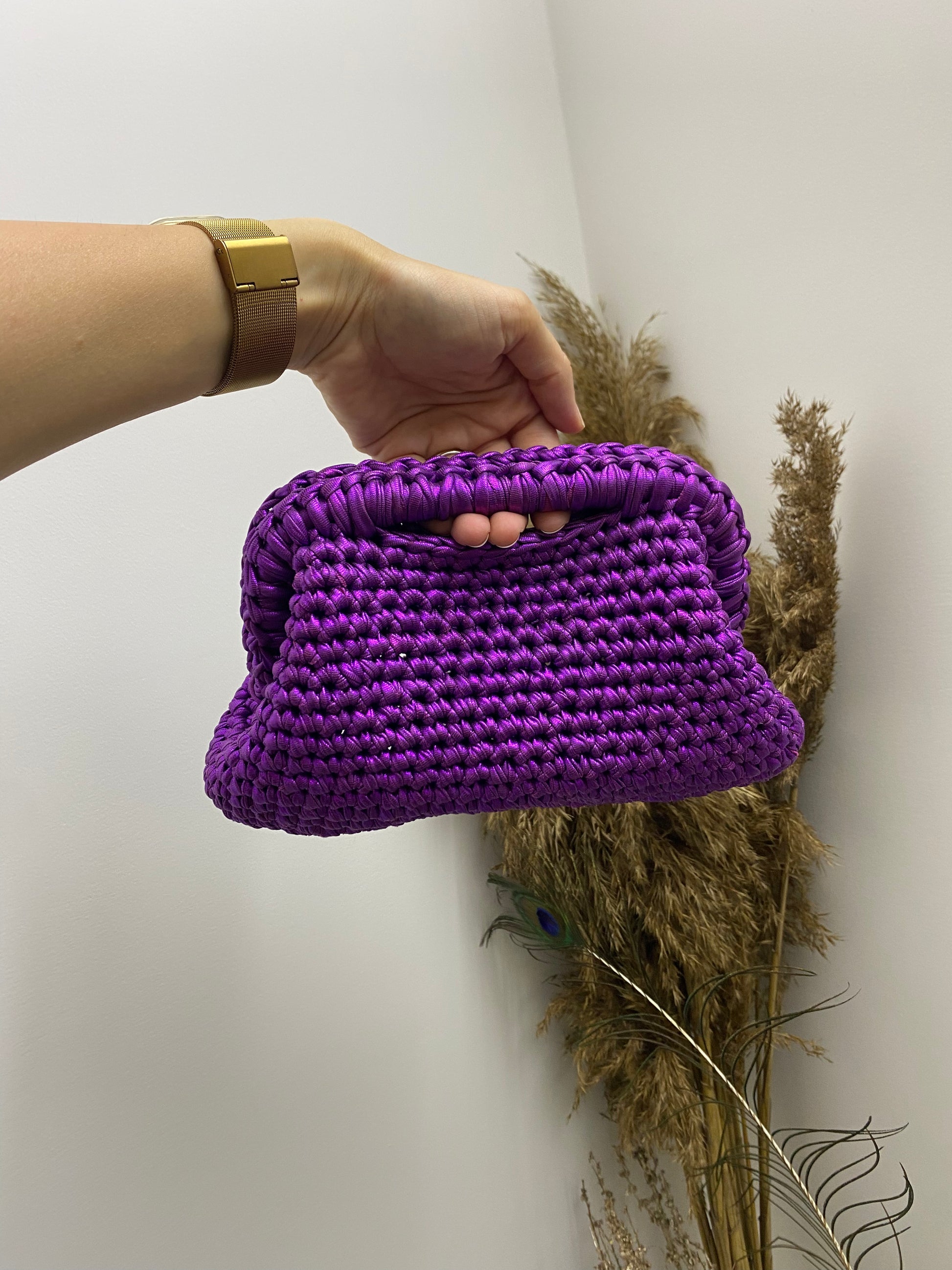 Borsa Pochette media viola lurex in cotone fatta a mano